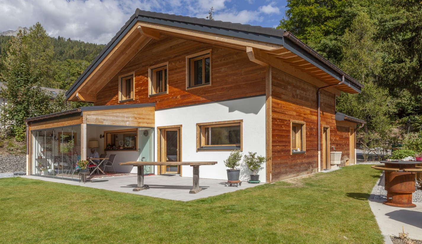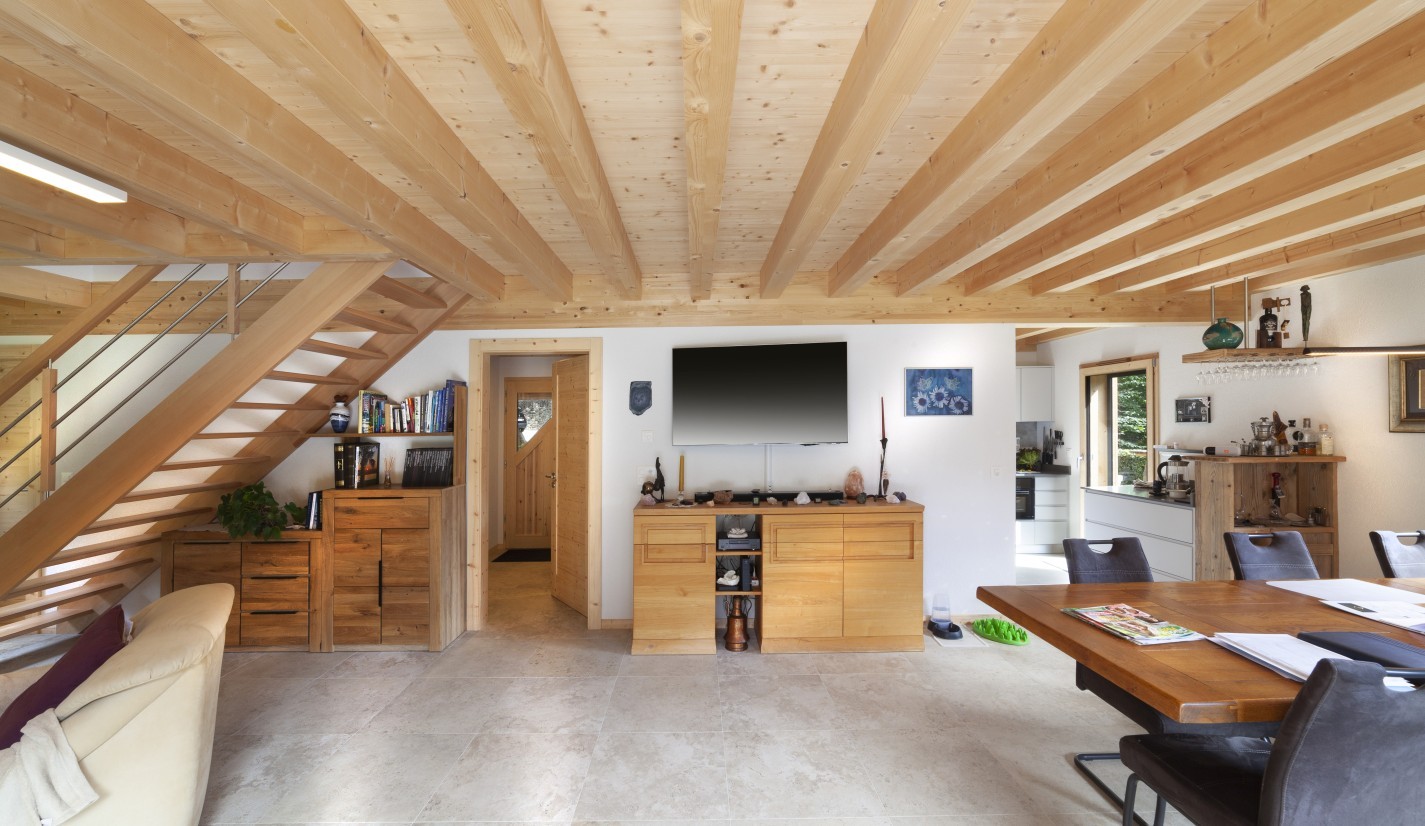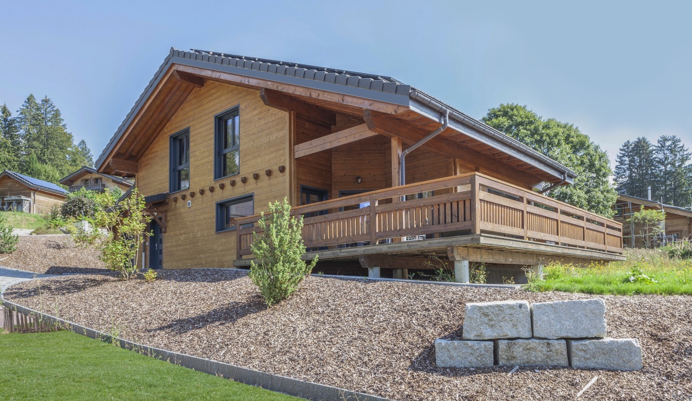 Les maisons en madrier de bois sont particulièrement adaptées aux secteurs montagneux où cette technique de construction est très répandue. Les constructions SWISS 3000 se fondent naturellement dans cet environnement avec leur large balcon et des balustrades bien travaillées.
