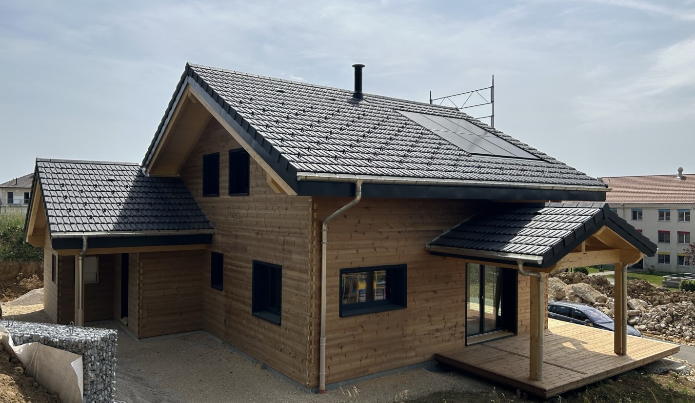 L’optimisation thermique d’une maison Swiss 3000 comprend l’installation d’une pompe à chaleur et de panneaux thermiques et photovoltaïques.